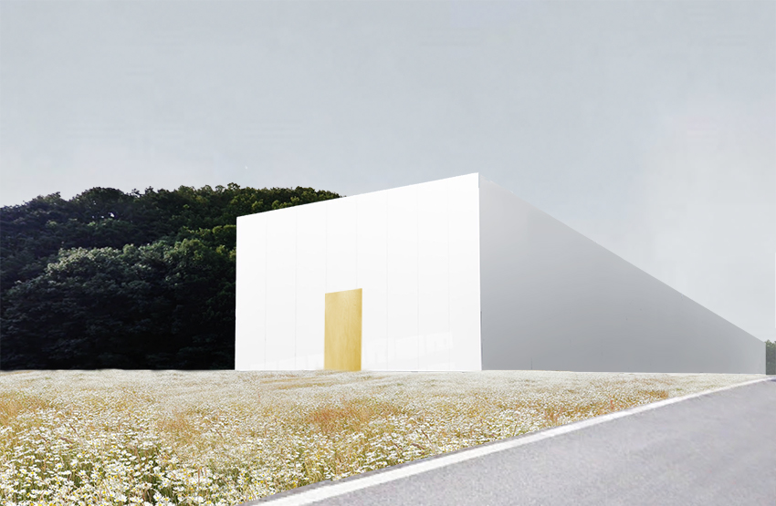 The use of charred wood is a reference to the use of napalm during the Korean war and its devastating effect on the landscape. Large areas of land, including villages, towns and cities, were burnt down by fires caused by the use of napalm used by US troops in the early 1950’s. Many civilians lost their lives in these fires. The linear sequence of spaces ends by exiting the building to the West, where the visitor is facing the field of flowers. The concept of the design is to end the spatial sequence of rooms with a sense of lightness and peace, where the darkness expressed in the interior spaces is contrasted by the lightness of the white flowers of the meadow.